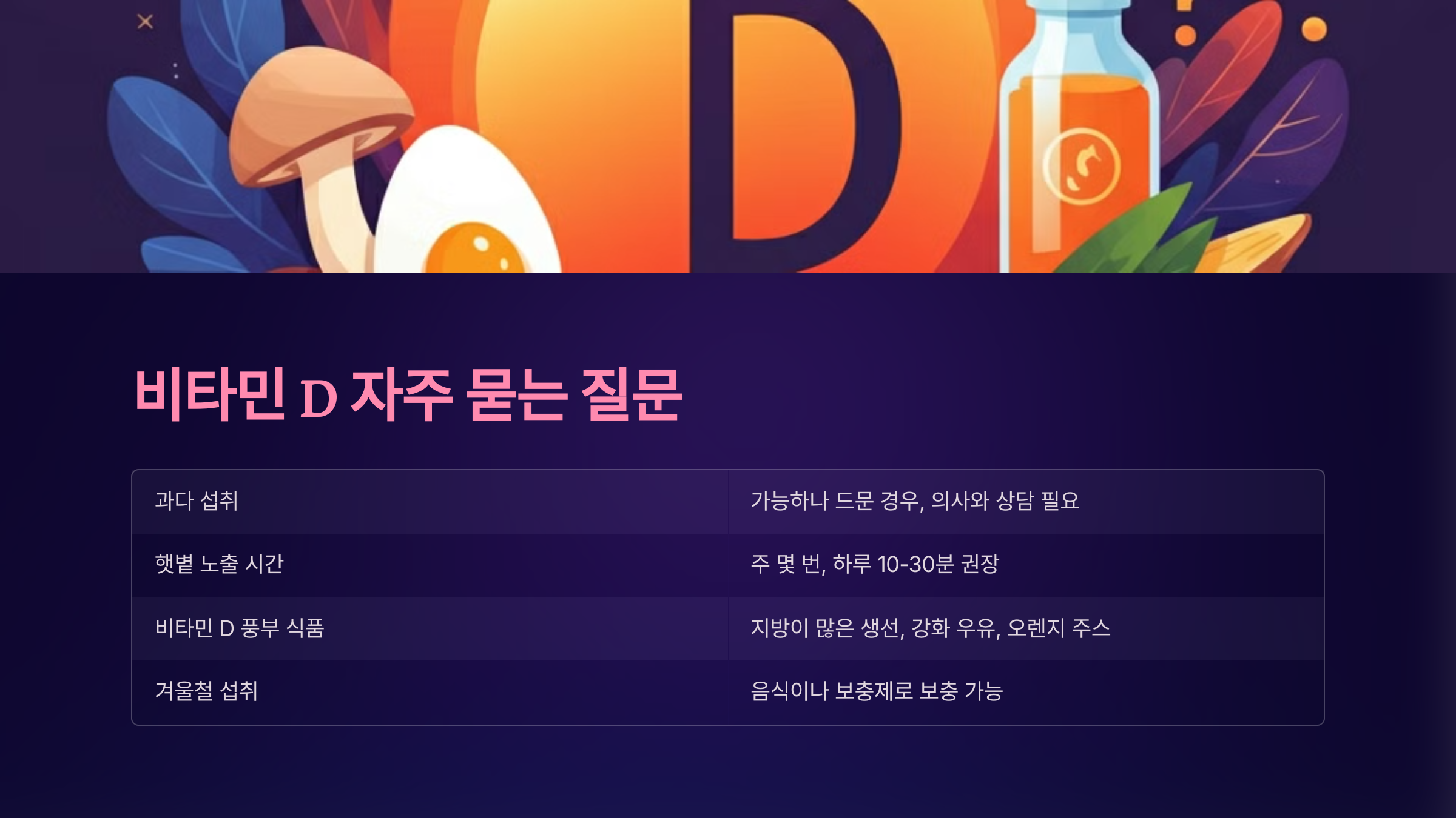 자주 묻는 질문: 비타민 D에 대해 궁금한 점