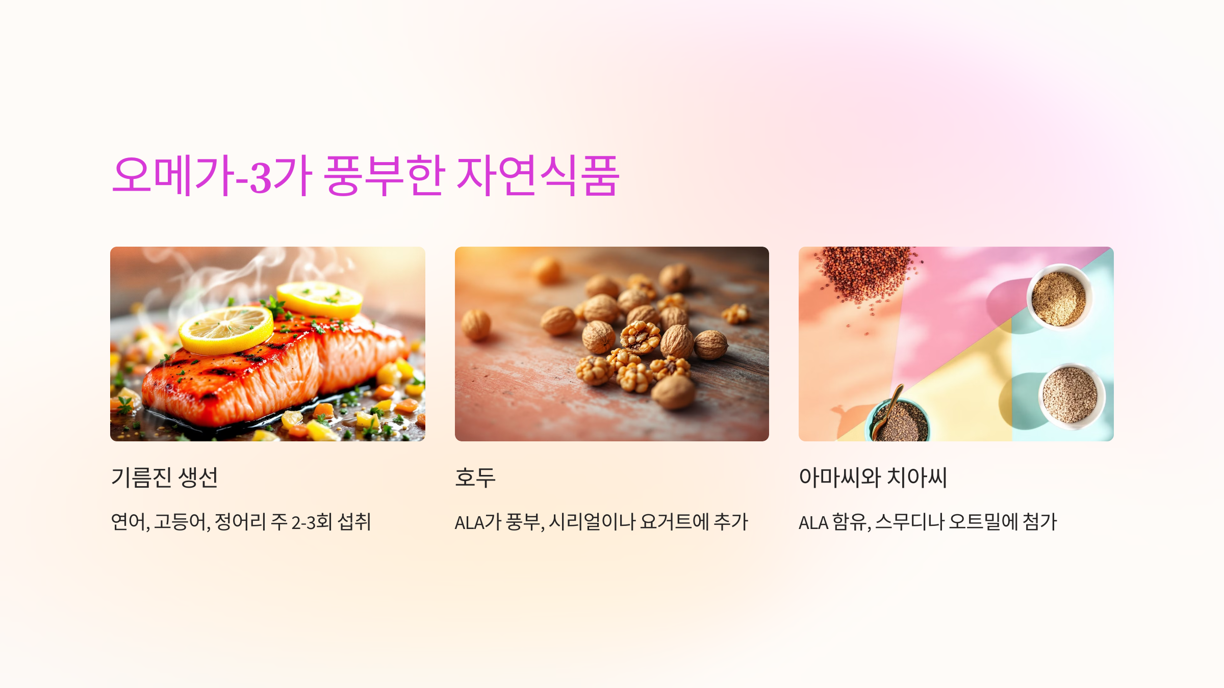 보충제도 좋지만, 자연스럽게 음식을 통해 오메가-3를 섭취하면 더 건강할 수 있어요. 다양한 영양소를 함께 섭취할 수 있거든요.