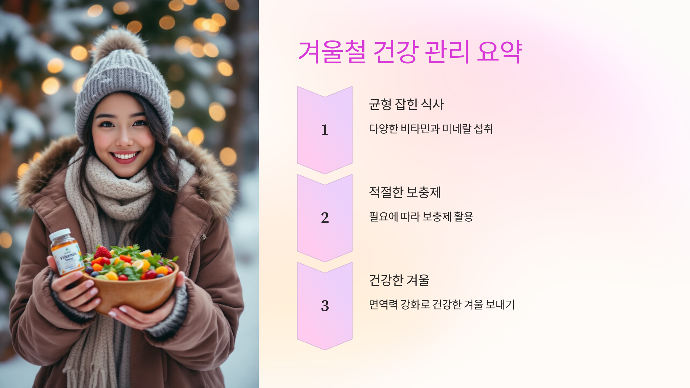이번 겨울, 균형 잡힌 식사와 적절한 보충제를 통해 건강을 지키세요!