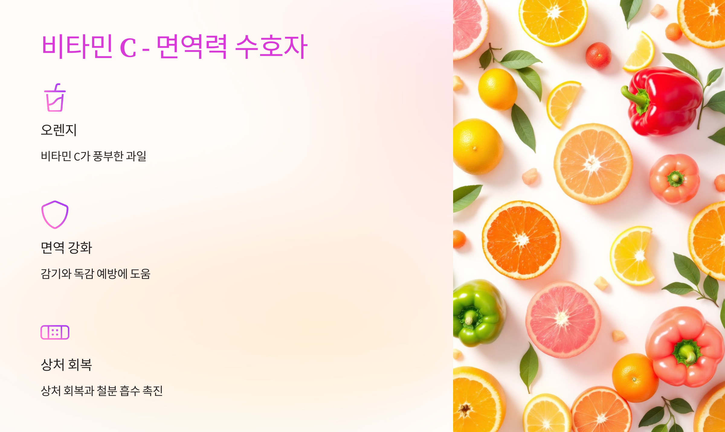 알아두면 좋은 점: 비타민 C는 체내에서 저장되지 않으므로 꾸준한 섭취가 필요합니다.