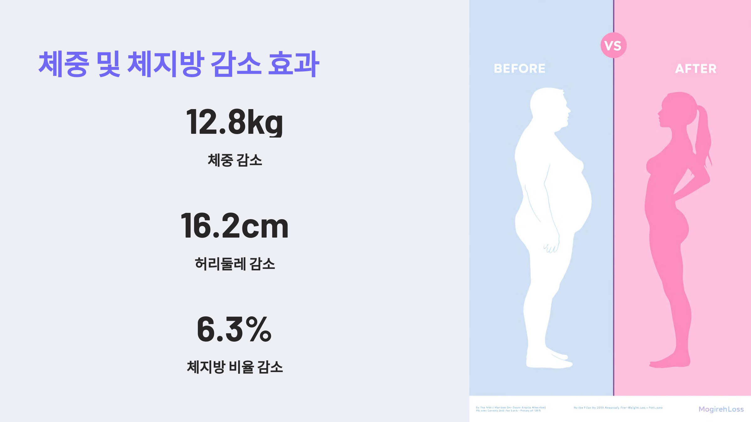 최근 수행된 10주간의 무작위 대조 실험(Randomized Controlled Trial, RCT)에 따르면, 매일 300mg의 아프리카 망고 추출물을 섭취한 성인 참가자들은 평균 12.8kg의 체중 감소를 경험했습니다. 같은 실험에서 허리둘레는 평균 16.2cm 감소했으며, 체지방 비율은 6.3% 감소한 것으로 나타났습니다. 이러한 결과는 식욕 억제와 지방 대사 활성화 효과가 복합적으로 작용했기 때문으로 해석됩니다.