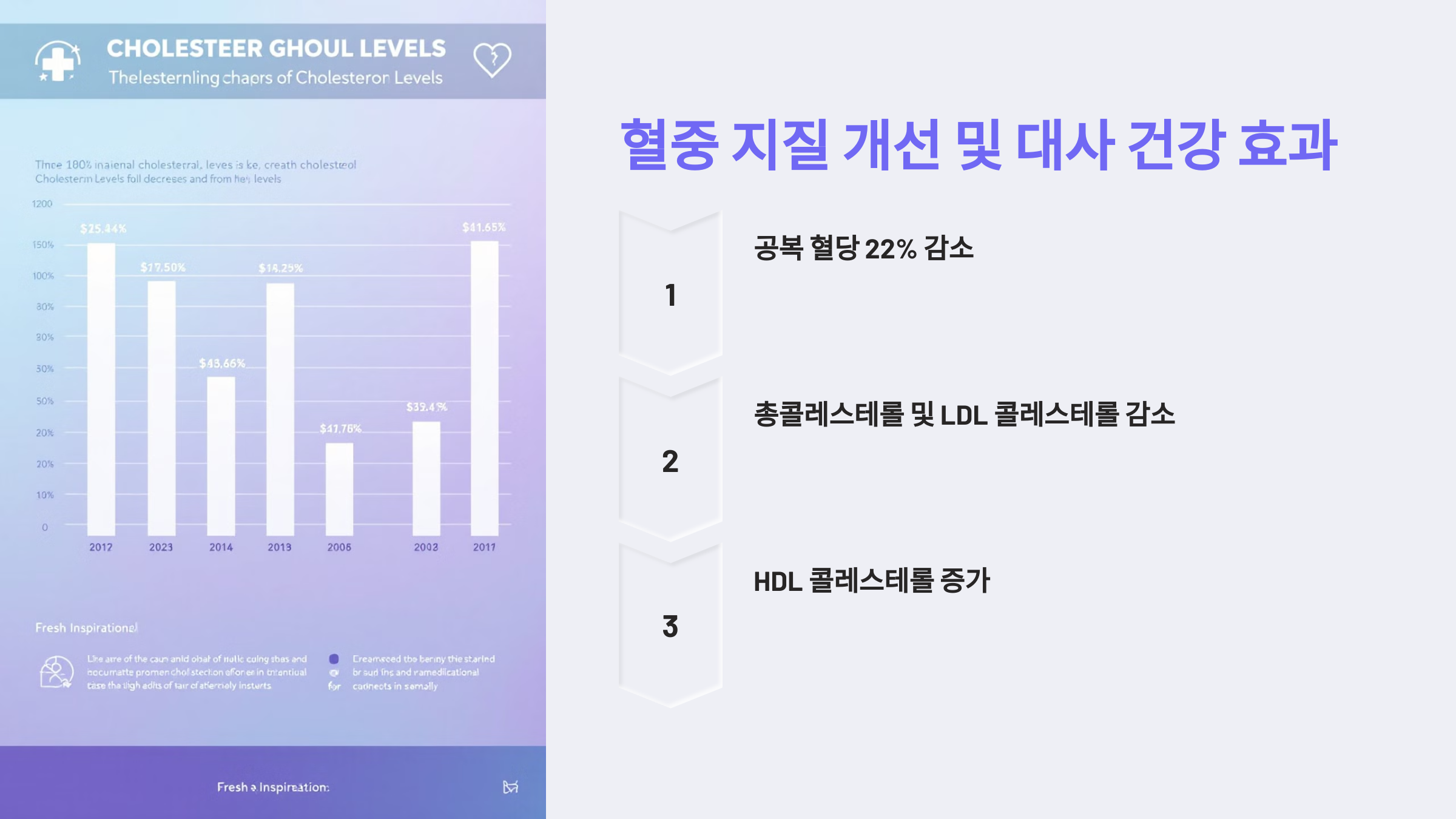 체내 염증 수치를 낮추는 데 기여하여 대사 증후군과 관련된 만성 염증을 완화시킵니다. - 혈당 조절