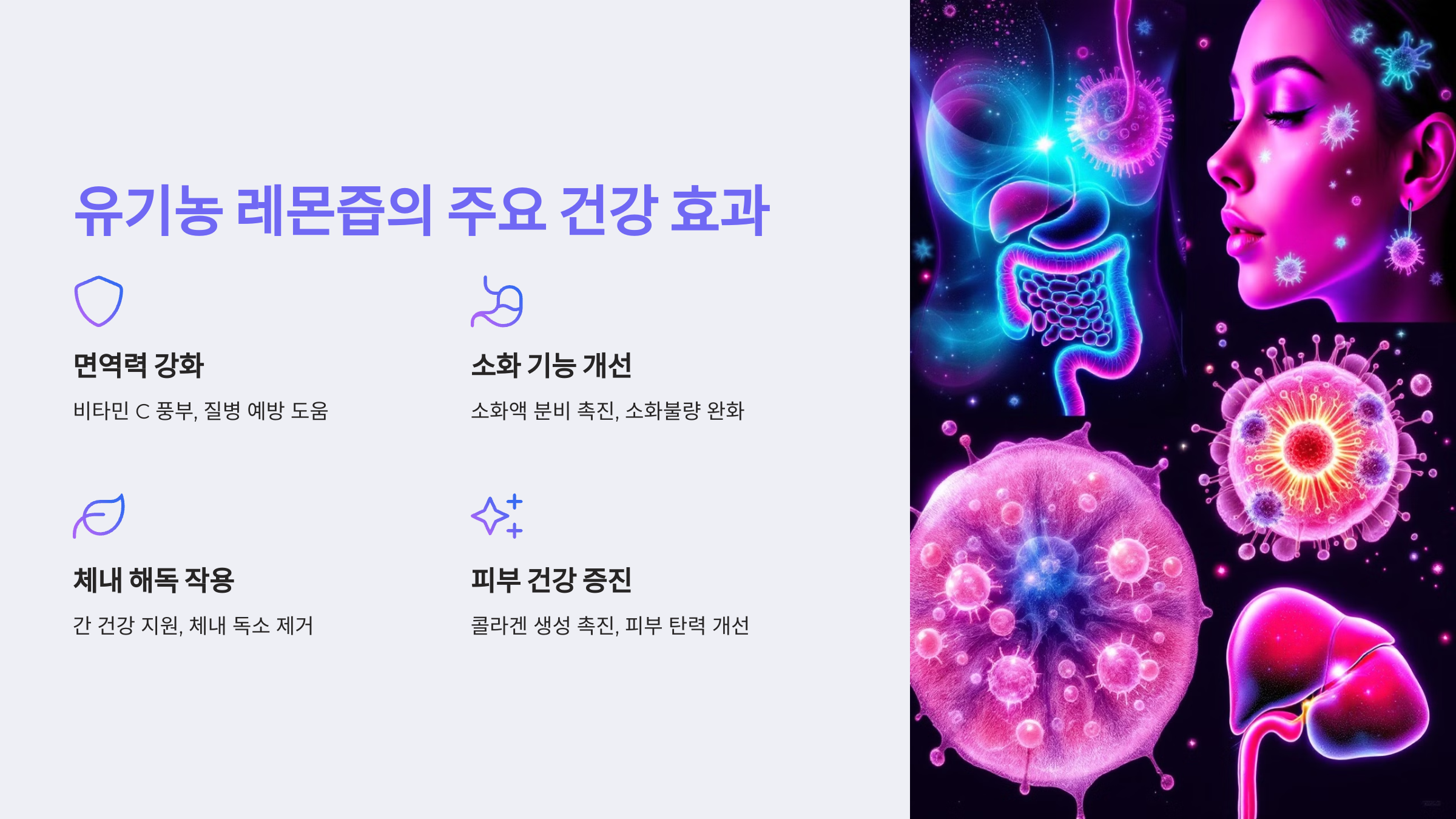 2. 100% 유기농 레몬즙의 주요 건강 효과 🍋