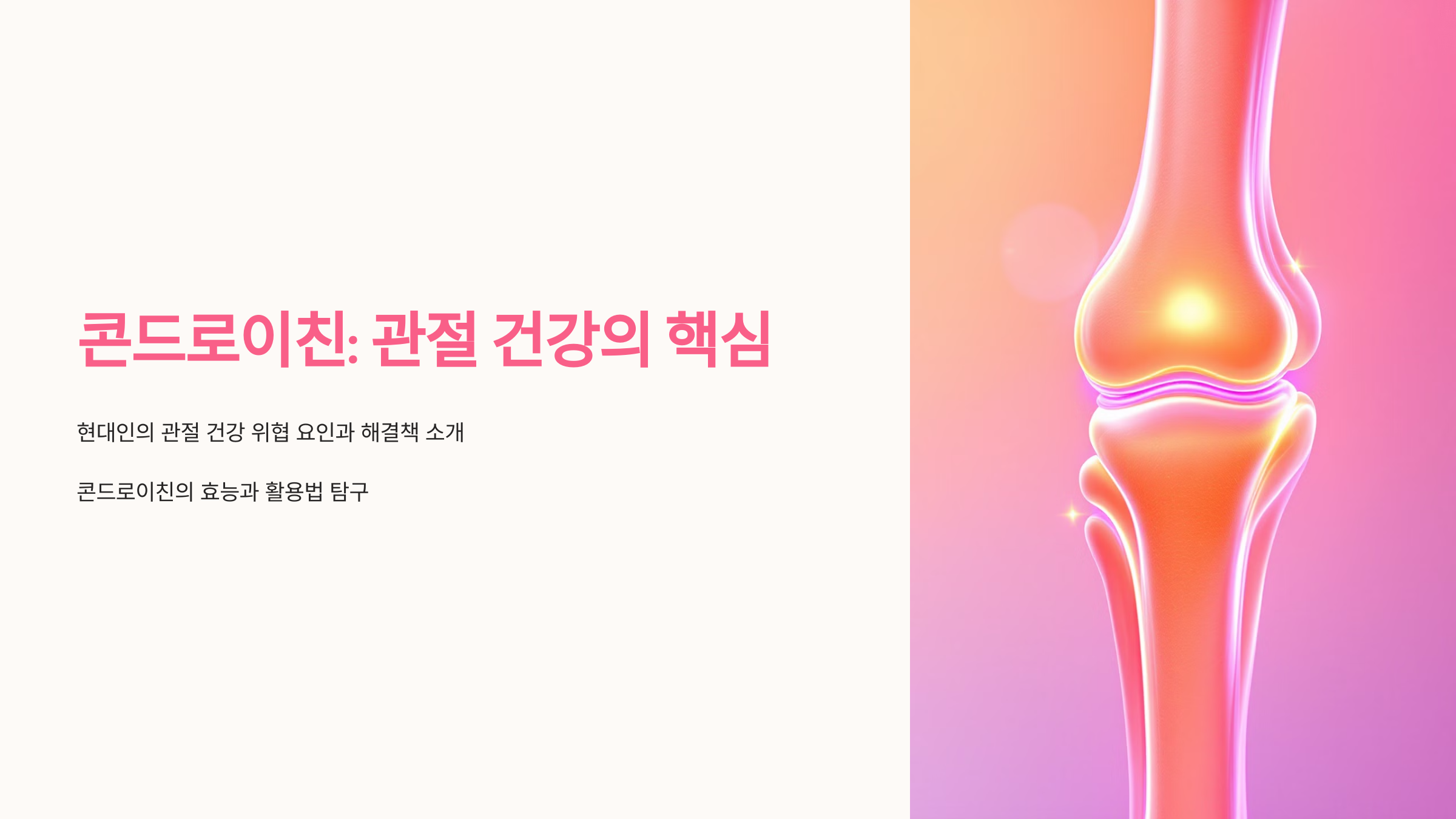 현대인의 생활 패턴은 점점 더 관절 건강을 위협하고 있습니다. 앉아 있는 시간이 길어지고, 활동량은 줄어들면서 관절 통증이나 뻣뻣함을 느끼는 사람이 늘고 있습니다. 특히 나이가 들수록 관절의 자연스러운 퇴화는 피할 수 없는 현실이죠. 이런 문제를 완화하고, 나아가 관절 건강을 지키는 데 도움을 줄 수 있는 성분이 있습니다. 바로 콘드로이친(Chondroitin)입니다. 😊