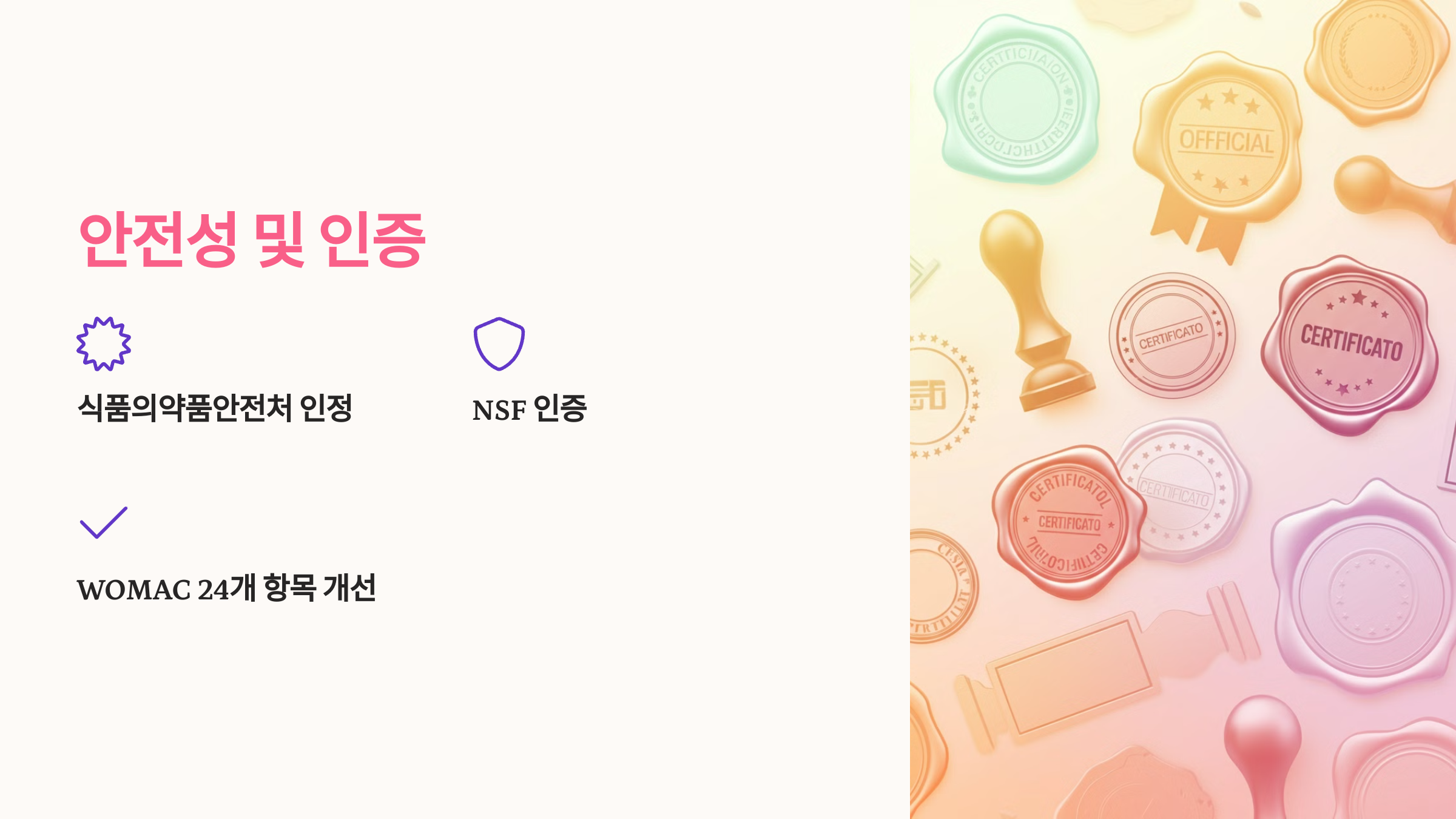 - WOMAC 24개 전 항목 개선 확인[4][8]